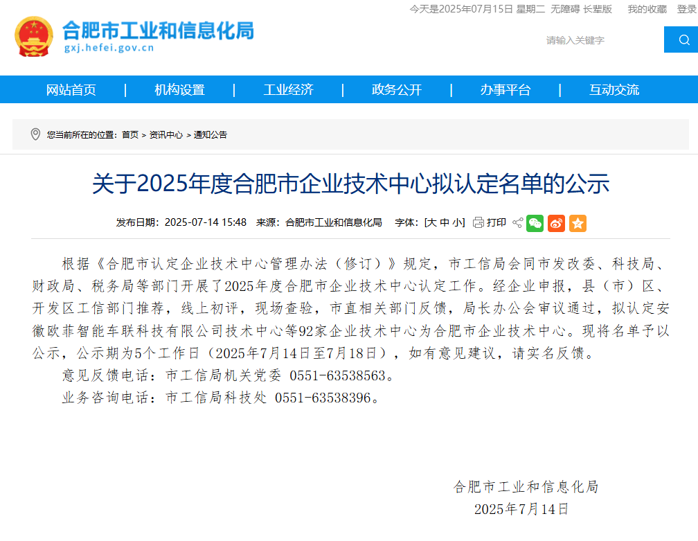 近日,依據《合肥市認定企業技術中心管理辦法(修訂)》相關規(guī)定,合肥市工業和信息化局聯合市發(fā)展和改革委員會、科學技術局、財政局、稅務局等部門組織開展了 2025